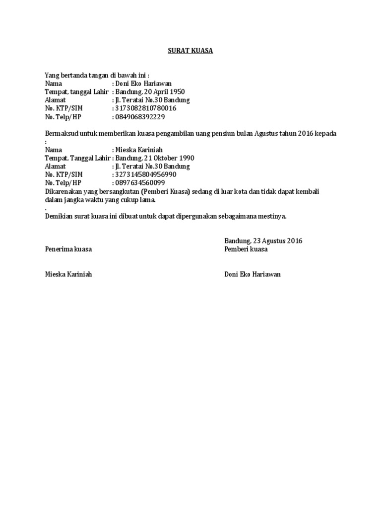 Surat Kuasa In English Braydencxt